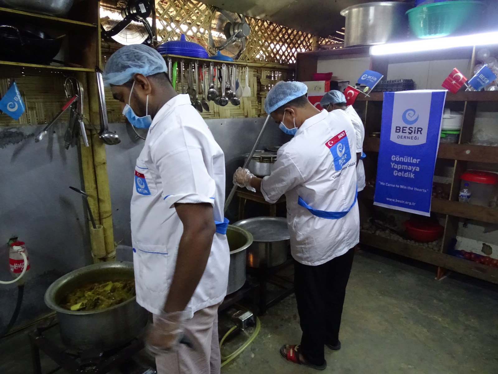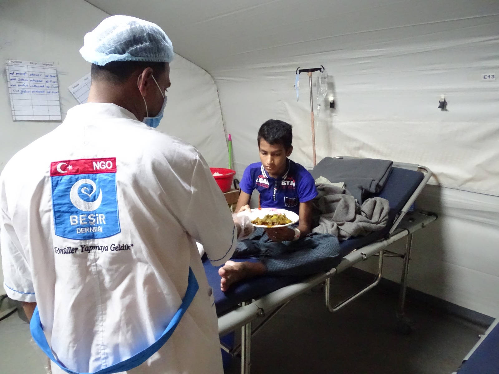 Türkiye Cumhuriyeti Sağlık Bakanlığı'nın Arakanlı kardeşlerimiz için inşa ettiği sahra hastanesinin sıcak yemek ihtiyacını karşılamak için aşevi kurup, hem hasta ve yakınlarının hem de sağlık personelinin hizmetine sunduk.